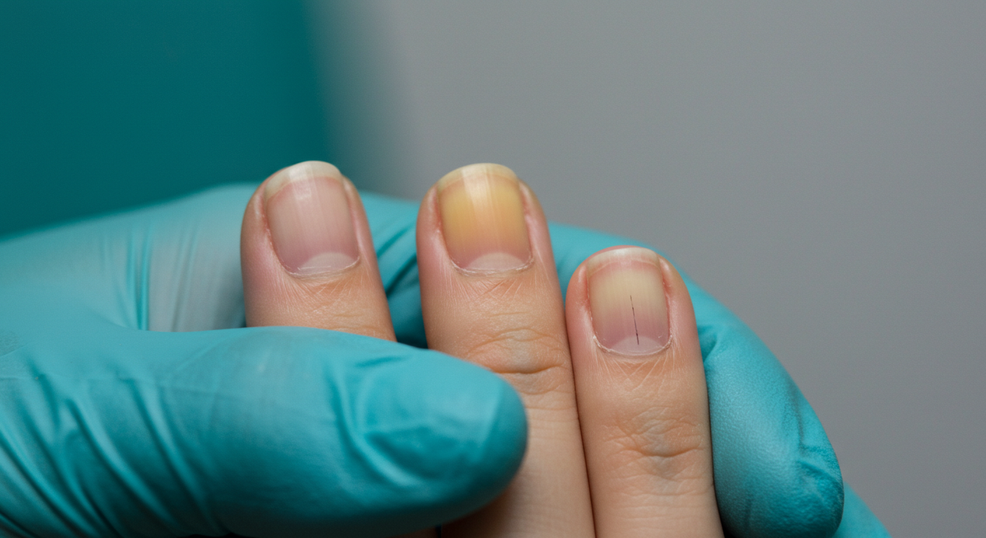 외상 없이 갑자기 나타난 검은색 세로줄(흑색선)이 손톱 주변 피부(큐티클)까지 번지거나, 줄의 너비가 넓어지거나, 색깔이 짙어진다면 피부암일 수 있습니다. 'ABCDE' 규칙에 따라 변화를 관찰하고, 의심된다면 반드시 조직 검사를 받아보세요.