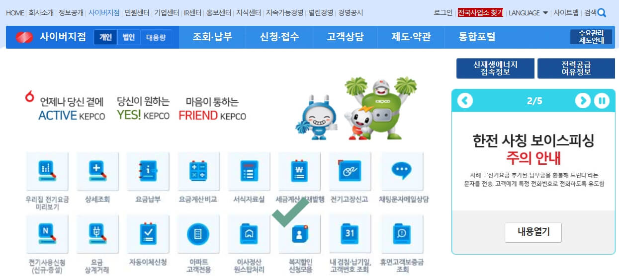 (한국전력 사이버 지점 - 바로가기 사이버지점 메인 (kepco.co.kr) )