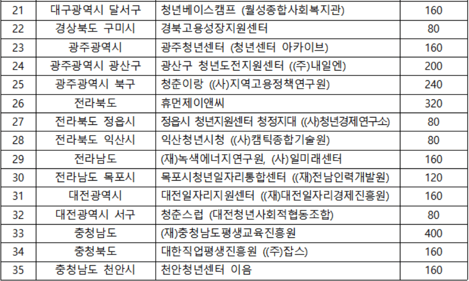단기프로그램부터 최대 9개월의 장기 프로그램까지 있으며 신청 자격도 세분화되어있습니다. 지역별로는 서울 4, 인천 2, 경기 3, 전라도 8, 경상도 7, 충청도 5, 강원도 4, 부산·울산 각1로 총 35개 지역이 참여하며 각 해당 사항에 맞는 청년들이 지자체를 통해 지원하고 성공적 취업을 목적으로 합니다.