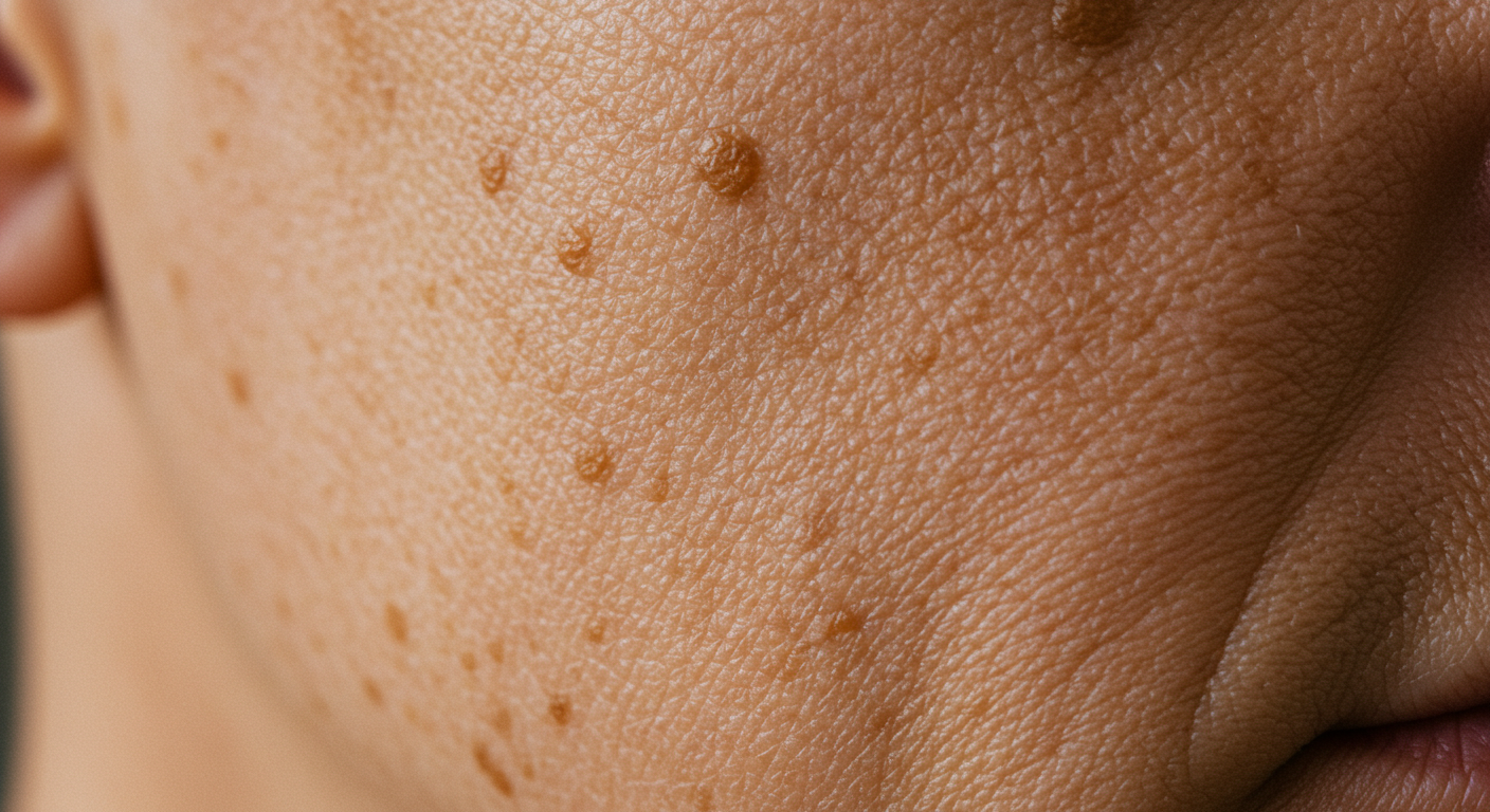 - 특징: 초기에는 점처럼 생기다가 점점 커져요. 색깔은 짙은 갈색에서 검은색까지 다양하고, 표면이 오돌토돌하거나 닭 벼슬처럼 솟아오른 모양이 특징입니다. 주로 얼굴뿐만 아니라 목이나 손등에도 나타날 수 있어요.